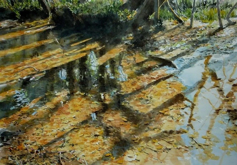 В основе творческого метода художницы лежит интуитивный подход, при котором она позволяет краске диктовать направление движения, часто отказываясь от детальных эскизов в пользу мгновенного эмоционального отклика на окружающую среду. Уайлдер мастерски использует мастихин для создания объемных, почти осязаемых поверхностей, что придает ее картинам скульптурную глубину и заставляет свет физически играть на неровностях акрилового слоя. Ее палитра колеблется от приглушенных, туманных тонов раннего утра до взрывных, насыщенных оттенков осеннего леса, при этом каждый мазок кажется оправданным и точным в своей кажущейся небрежности.