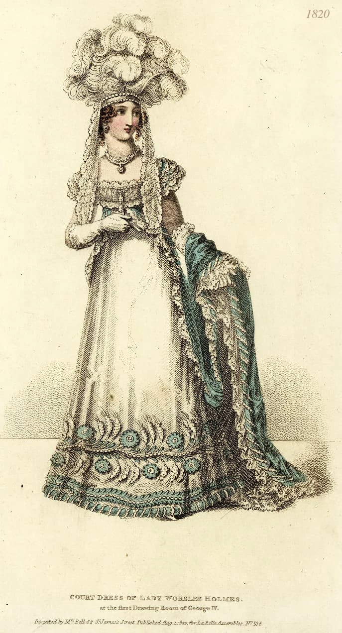 Британская модница начала XIX века. Шляпы с перьями считались обязательным атрибутом приличной дамы