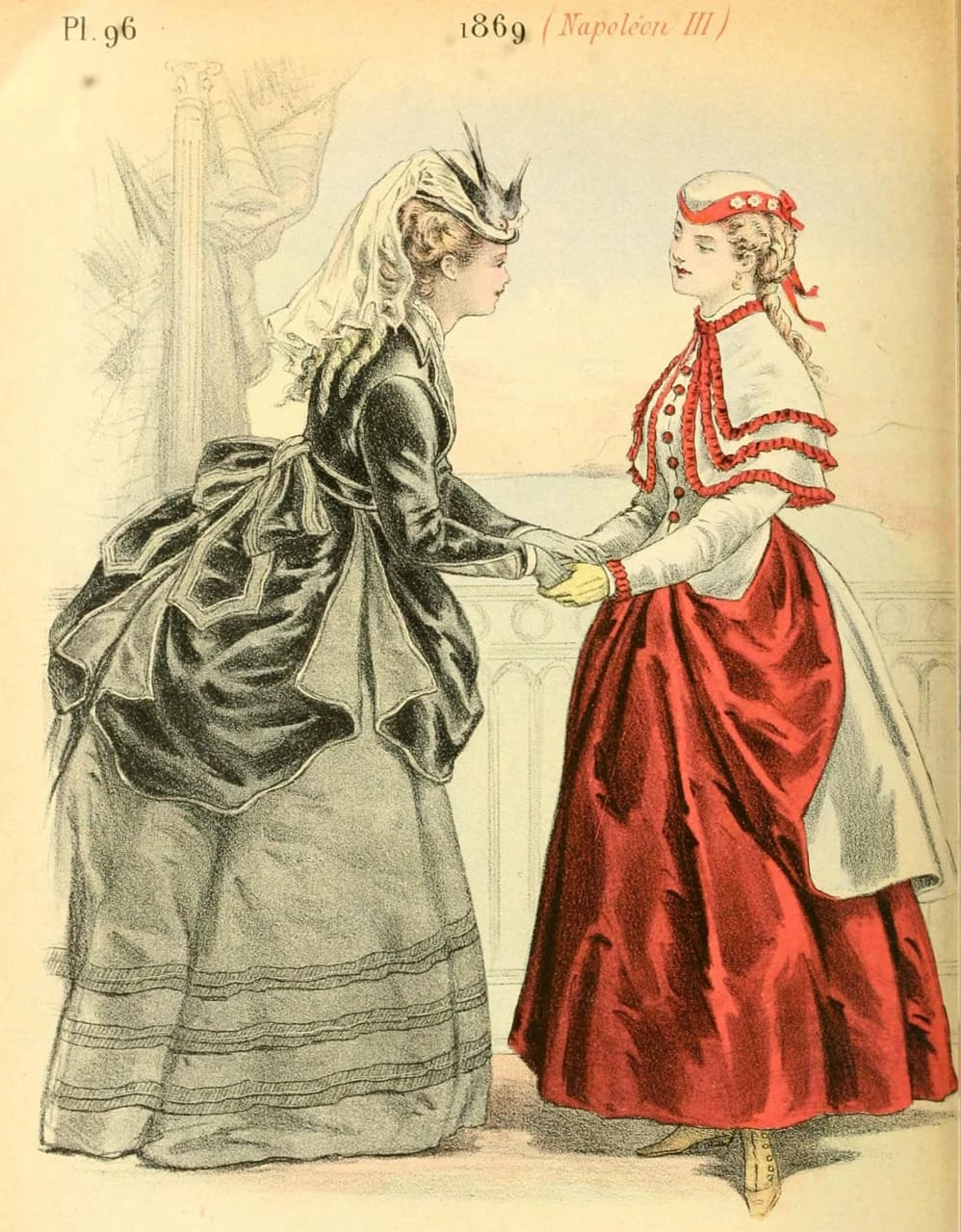 Французские дамы. 1869 год. К концу столетия мода на перья достигнет своего пика