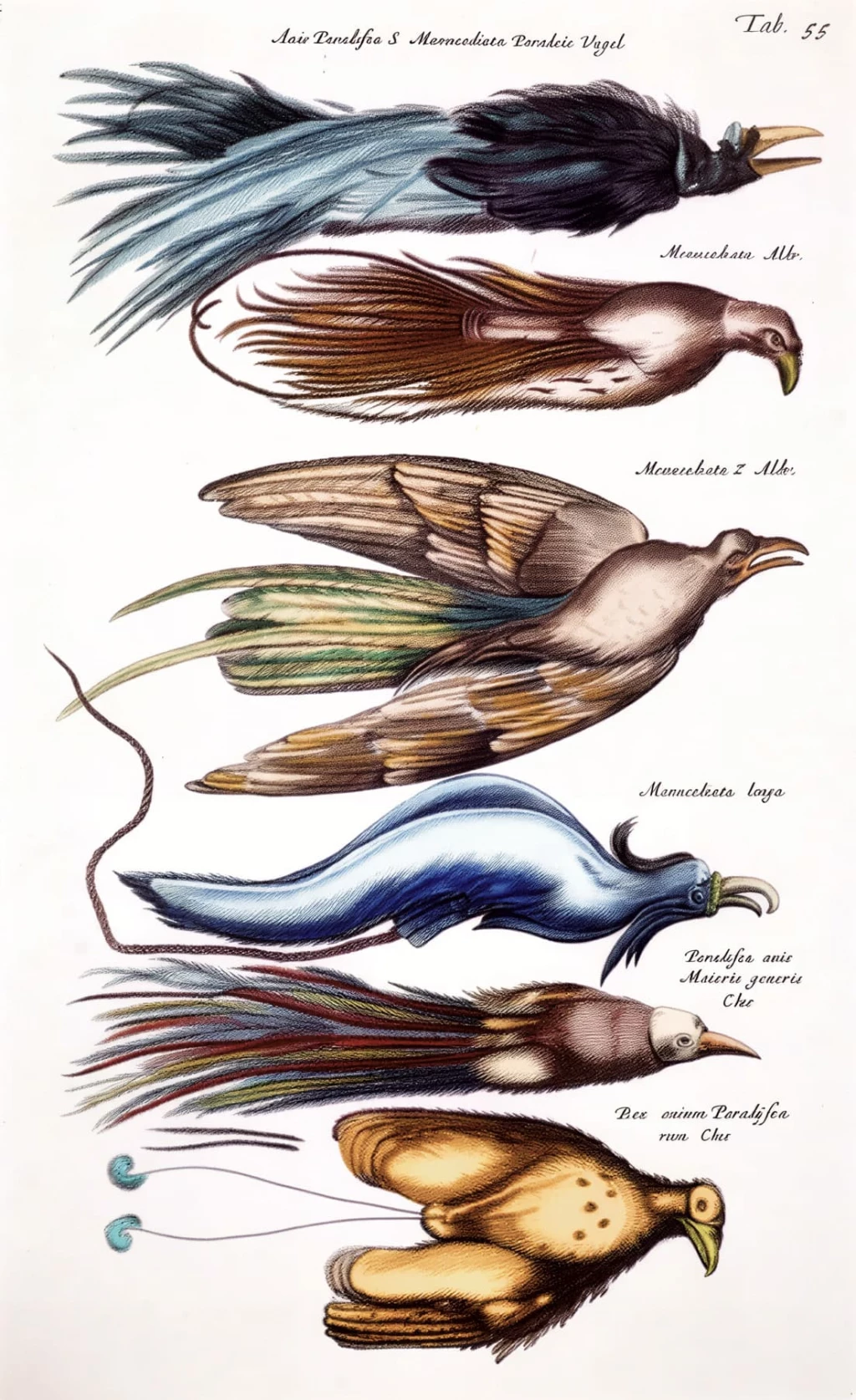 Иллюстрация из книги XVIII века с различными видами райских птиц