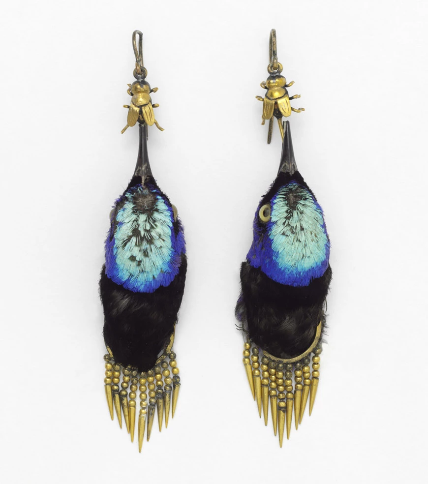 Серьги из колибри. 1875 год. Крошечных птичек вставляли в оправу и носили как украшения