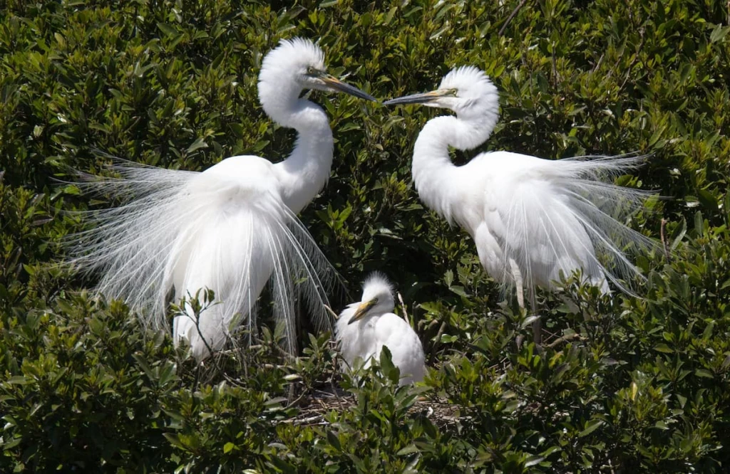 Белые цапли у гнезда. Из-за моды на эгретки эти птицы оказались на грани уничтожения