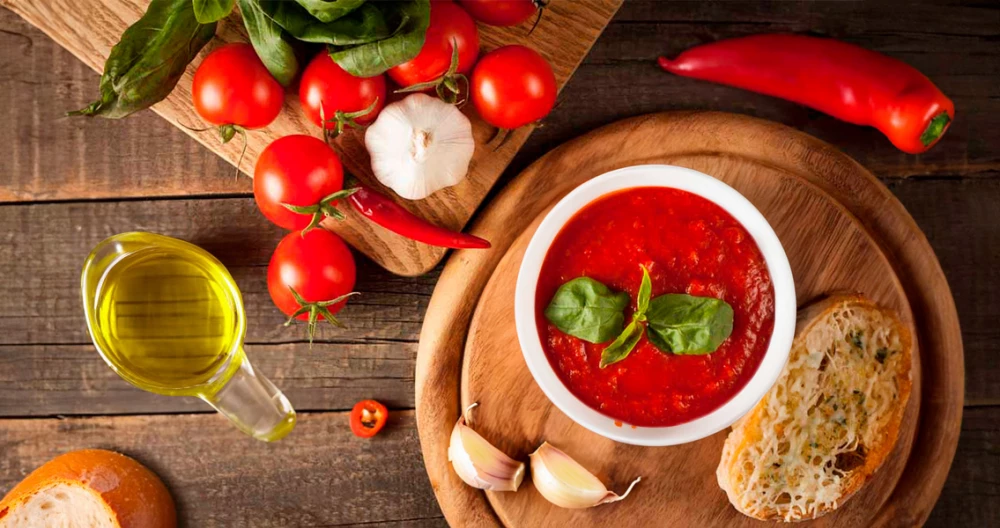 Помидоры, чеснок, хлеб, оливковое масло, уксус и немного перца — и вот уже перед тобой стакан жидкого солнца. Он родился у бедных испанских земледельцев, но спустя века стал звездой ресторанов. Гаспачо — это простота, которая не нуждается в украшениях.