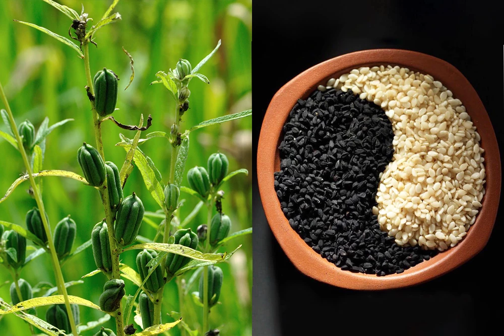 Кунжутные зерна «хранятся» в удлиненных коробочках, которые крепятся к стеблю, достигающему до 2 метров в высоту. Если коробочка перезревает, она взрывается как хлопушка, разбрасывая содержимое по округе.