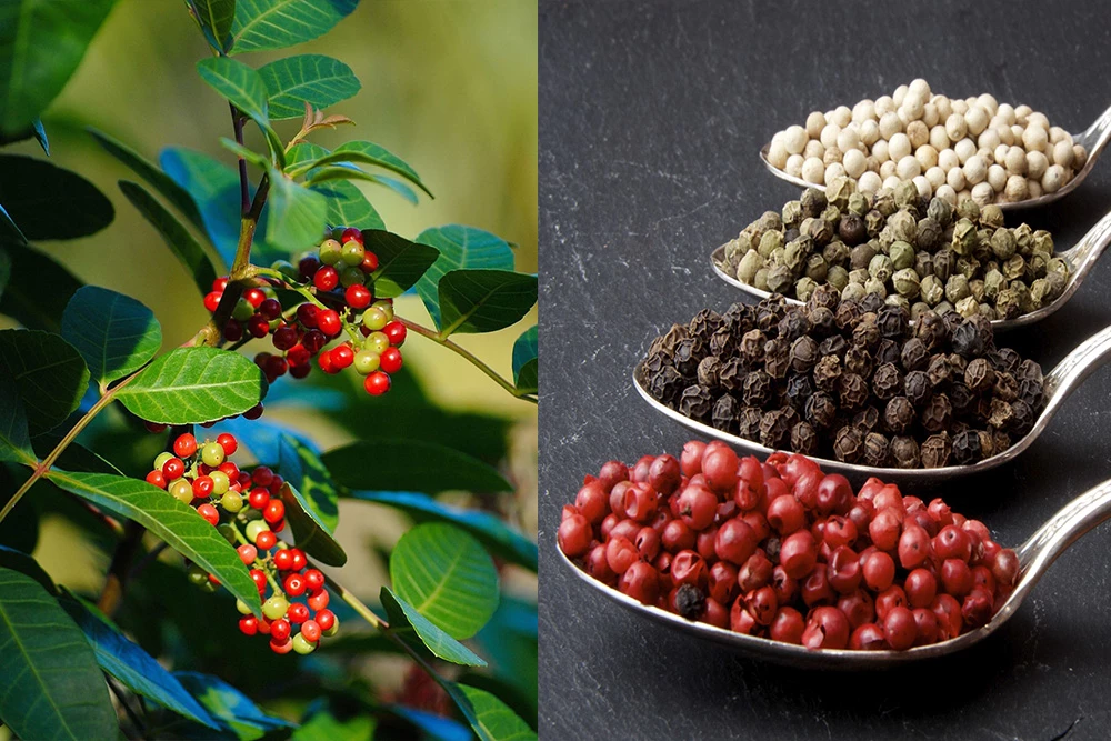 До того как стать приправой, черный перец напоминает то ли гроздь винограда, то ли какие-то похожие на него ягоды, да и растет он на небольших кустарниках-лианах. Плоды собирают, высушивают, и вуаля — мы можем добавлять их в пищу. Кстати, все виды этой приправы — черный, зеленый, красный и белый перец — плоды одного и того же растения, собранные в разное время. Популярный черный горошек — результат сбора и сушки недозрелых плодов зеленого цвета, но если высушить их в специальной печи, перец сохранит свой цвет. Белый перец — это плоды разной степени зрелости, с которых снята кожица, ну и красный перец — спелые плоды.