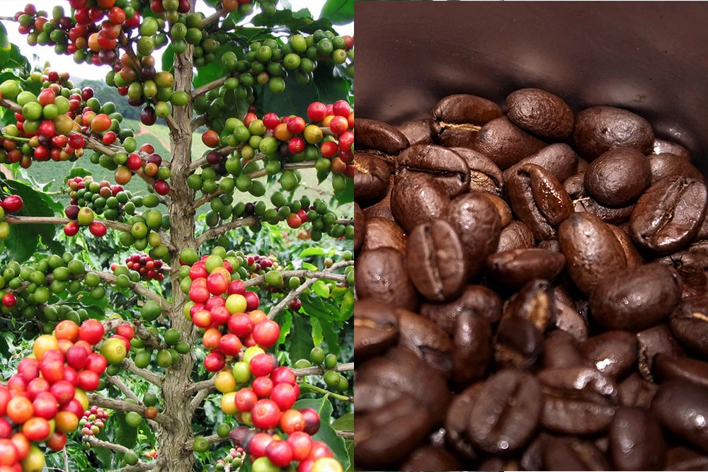 Кофе представляет собой небольшие деревья или крупные кустарники, все части которых содержат кофеин, отпугивающий вредителей. Как и в случае с какао, напиток получается из семян, заключенных в плодах. За определенное внешнее сходство их называют «кофейными вишнями».