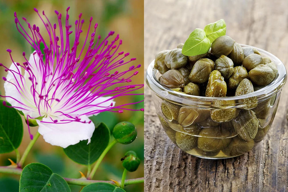 На первый взгляд может показаться, что каперсы — это мутировавшие корнишоны. Но нет: перед вами не что иное, как нераспустившиеся цветочные бутоны и созревшие плоды растения каперсы колючие. После сбора их солят, маринуют или консервируют в уксусе, причем чем каперс меньше и плотнее, тем выше он ценится.
