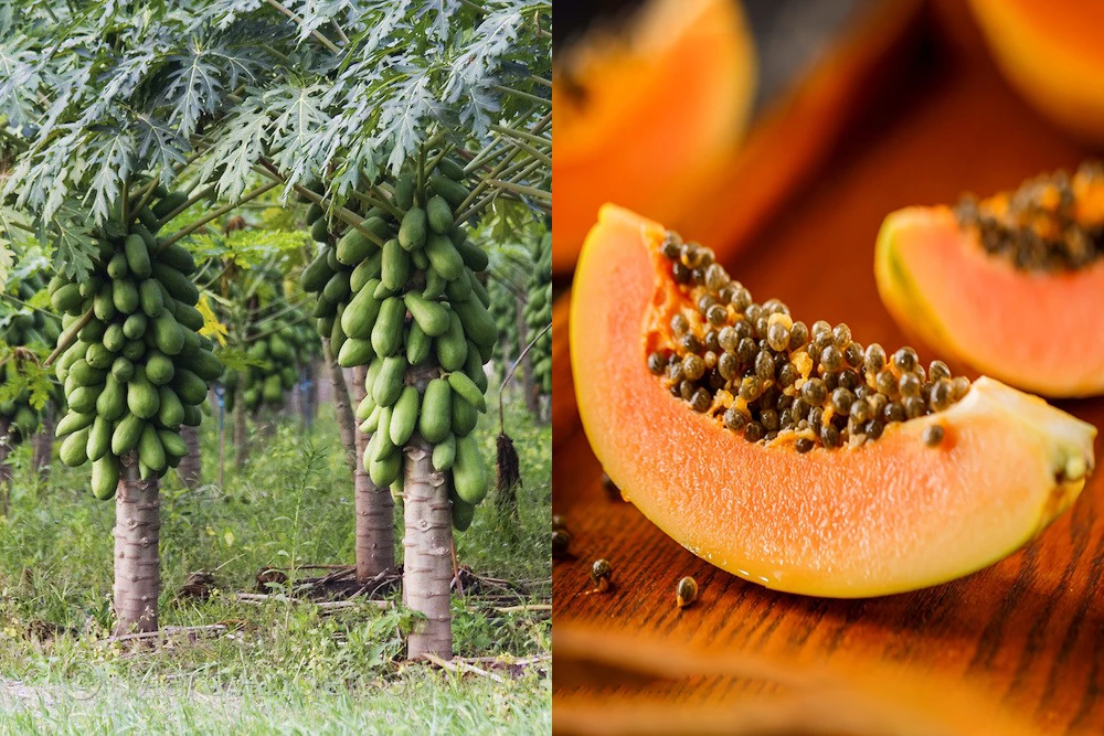 Папйя — плод пальмообразного дерева, лишенного ветвей. Как и некоторые другие растения из нашего списка, она растет гроздьями, а ее плоды крепятся к самому стволу. В основном их едят в сыром виде, а иногда тушат, добавляют в карри и салаты.