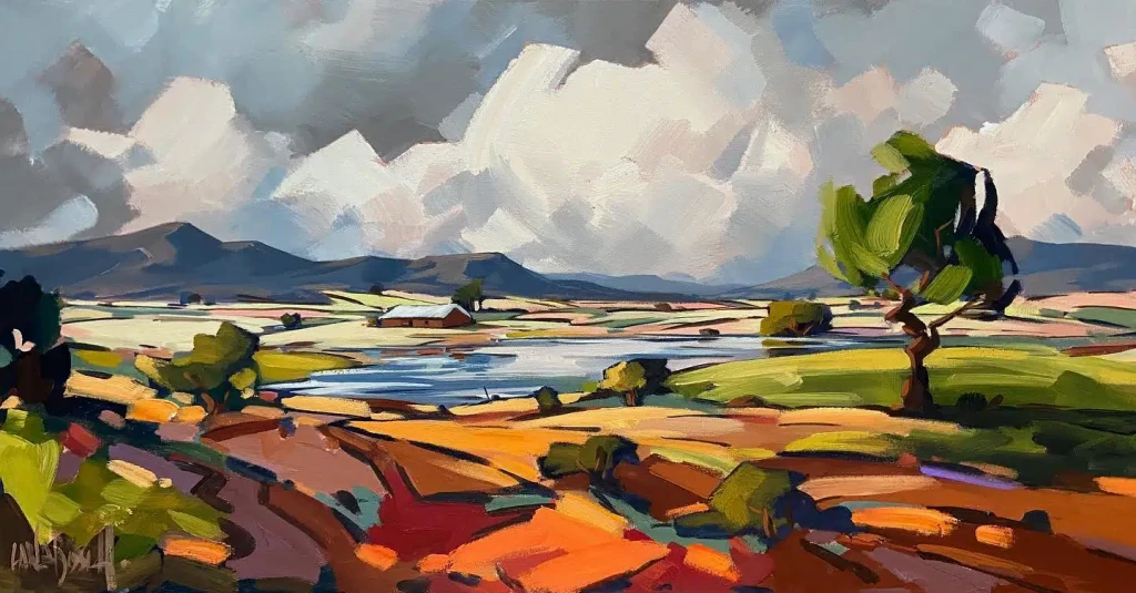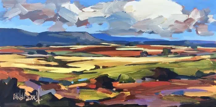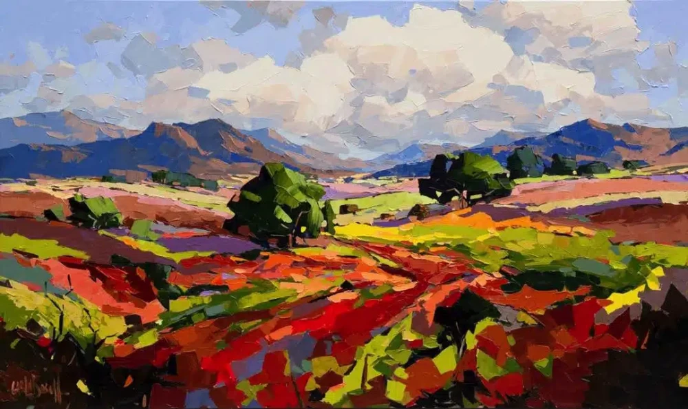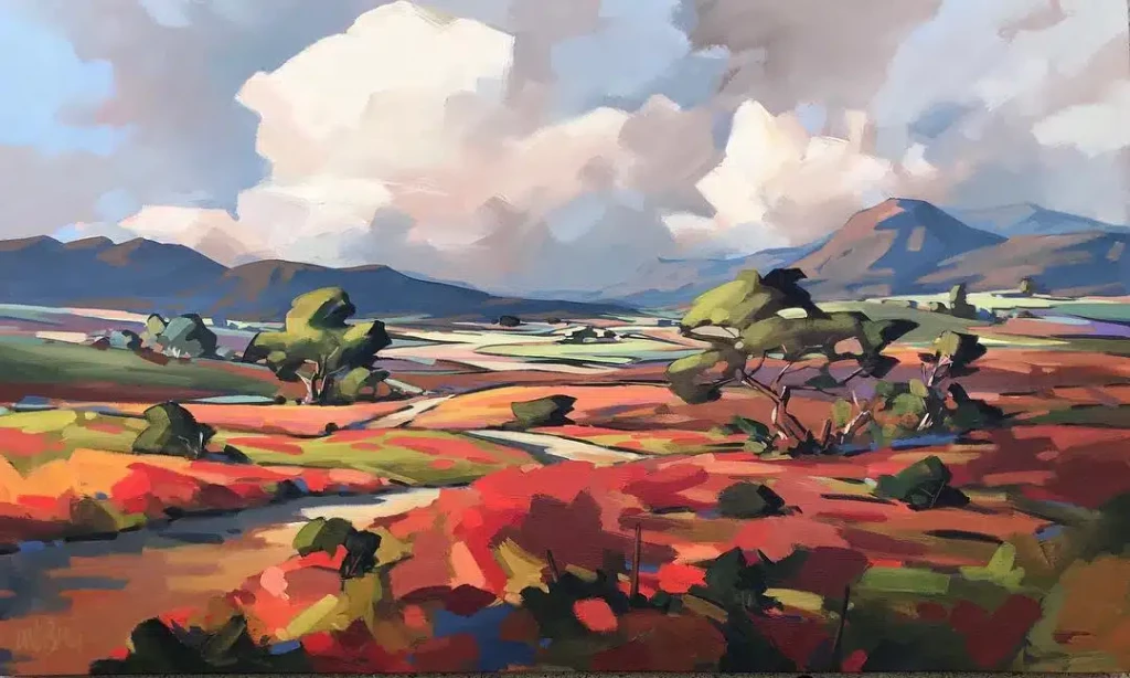 Я так не думаю. Восприятие происходит не чисто визуально. Вокруг не просто камни, деревья и цветы. Как насчет запаха, прикосновения, звуков, истории и личного опыта, работающих вместе, создающих эмоции, которые производят на вас впечатление? В конечном счете, вы видите пейзаж не только глазами. Я стараюсь донести этот контекст через свой смелый импрессионистический стиль. Моя цель — привести вас в этот опыт, я хочу, чтобы вы почувствовали эмоции прекрасного пейзажа, ощутили праздник красоты жизни”.