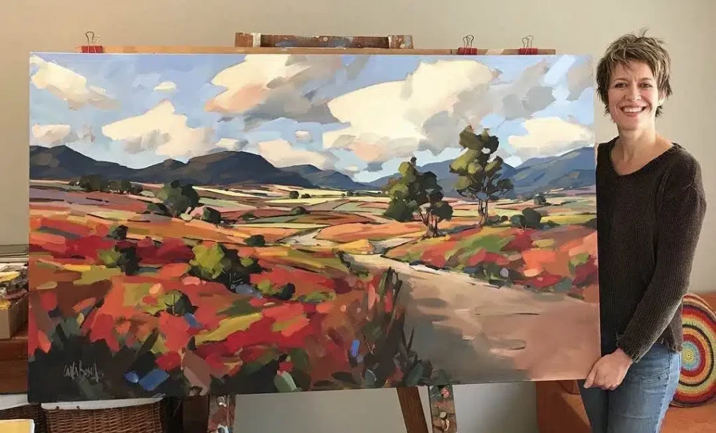 «В Южной Африке мне приходилось гораздо больше работать в студии. Но в этом было и преимущество — это заставляло меня работать по памяти и черпать из своих эмоций при создании картин. Этот процесс позволил мне быть немного смелее с моим подходом, и я научилась создавать пейзажные картины без прямых ссылок”.