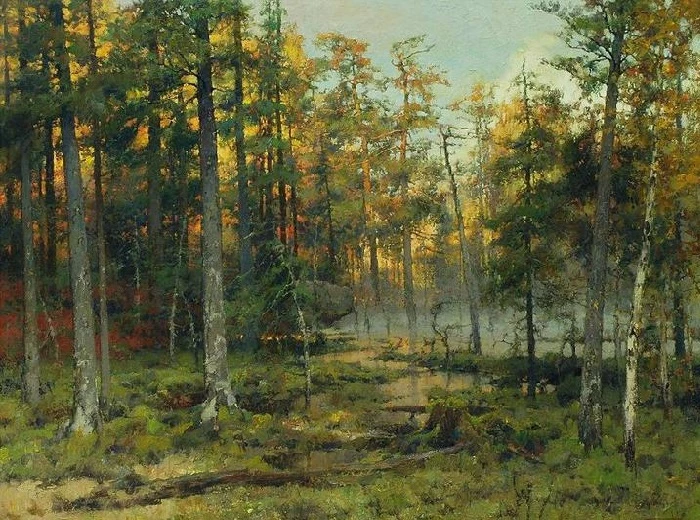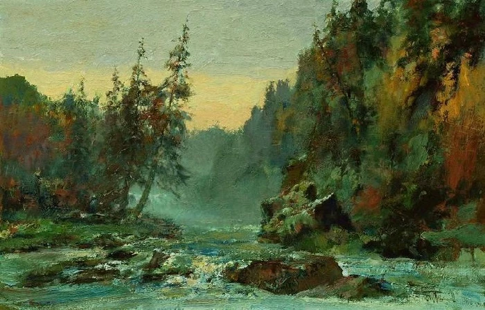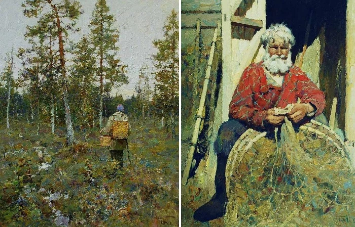 Несмотря на устойчивую преданность лесным сюжетам, ему остаются интересны захолустные дворики "Старого Архангельска", поморские баркасы на Соломбалке и ветхие "двухэтажки" поселка Гидролизного завода.