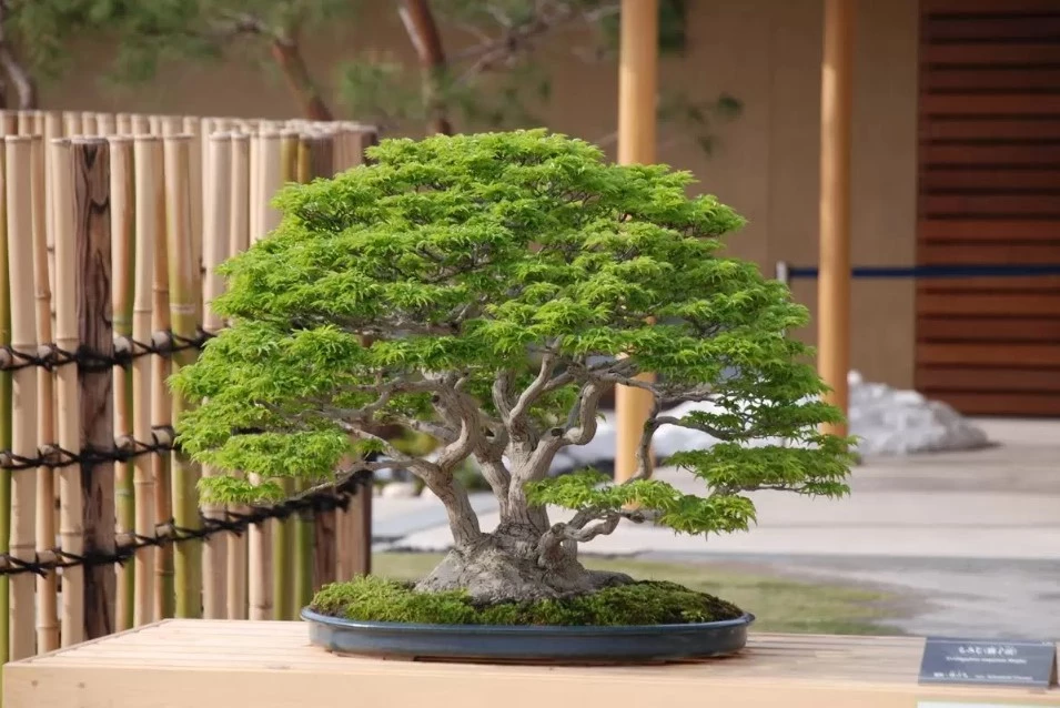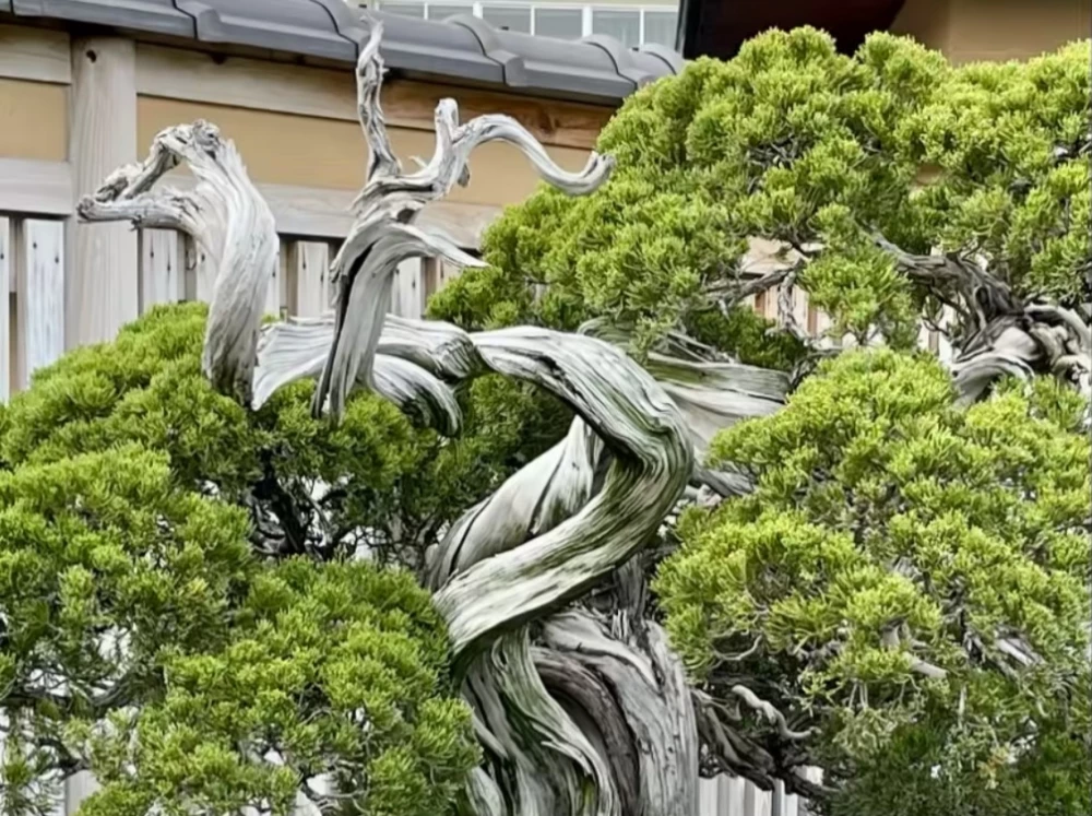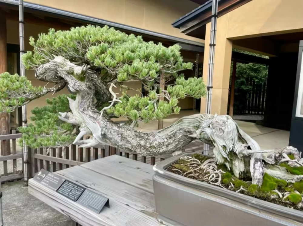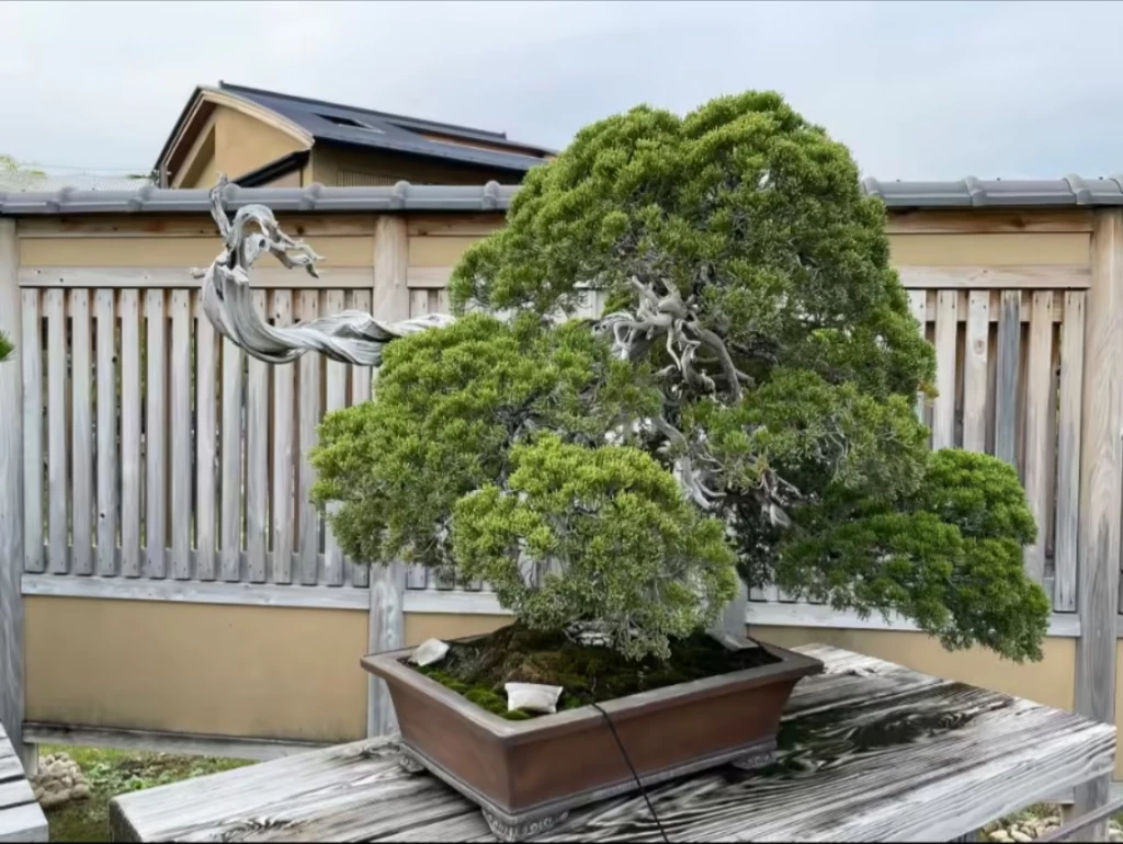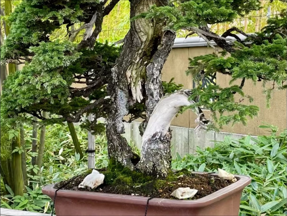 Этой иезской ели, по приблизительным подсчетам, уже более тысячи лет. В ее поросшем мхом стволе образовалась сквозная дыра, а испещренная трещинами и наростами кора напоминает морщины и кожные образования у стариков. Это один из самых древних образцов бонсая в мире.