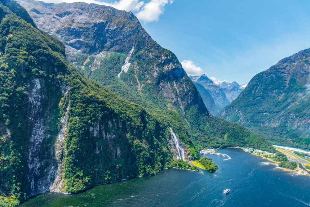 Дорога к фьорду Милфорд-Саунд считается одной из самых красивых в мире. 120 километров пути пролегают через национальный парк Фьордленд, мимо водопадов, озер и заснеженных горных вершин. По дороге можно встретить редких попугаев кеа и увидеть тропические леса, которым больше тысячи лет. Завершается маршрут у величественного фьорда, окруженного отвесными скалами высотой до 1200 метров.
