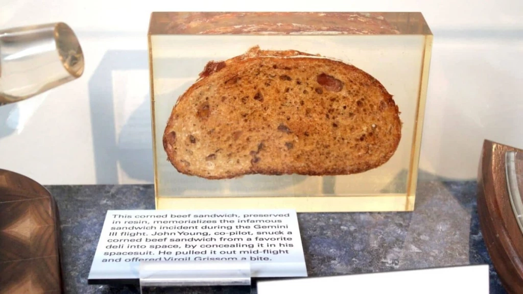23 марта 1965 года астронавт Джон Янг спрятал сэндвич с солониной в карман скафандра перед стартом миссии «Джемини-3». За 2 дня до старта сэндвич купил в кафе Wolfie’s в Коко-Бич астронавт Уолли Ширра и передал его Янгу. Примерно через 2 часа после запуска Янг вытащил бутерброд и предложил его командиру Гасу Гриссому. Тот откусил кусок. Хлеб немедленно начал крошиться в невесомости — и Гриссом убрал сэндвич в карман: крошки могли попасть за приборную панель.