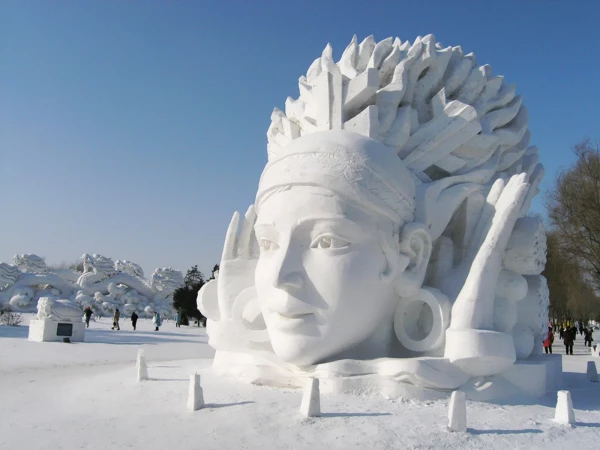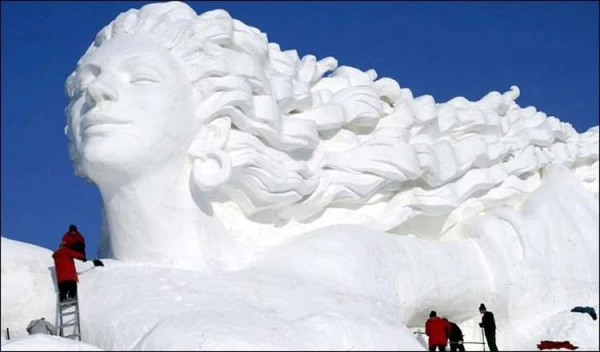 Отлично! Китай, Харбин, там каждый год проводится конкурс снеговых фигур...