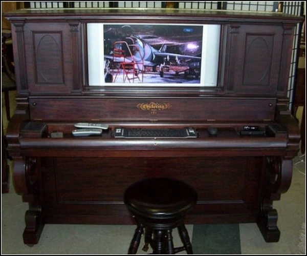 А вот и еще один продвинутый синтезатор, который удачно прикидывается пианино. Compiano стилизован под инструмент красного дерева но тсоит уже втрое дешевле - 6 998 долларов. Он существует в единственном экземпляре и позволяет смотреть телевизор, одновременно играя. Пока что это не под силу даже виртуозам, потому-то инструмент до сих пор никто не купил.