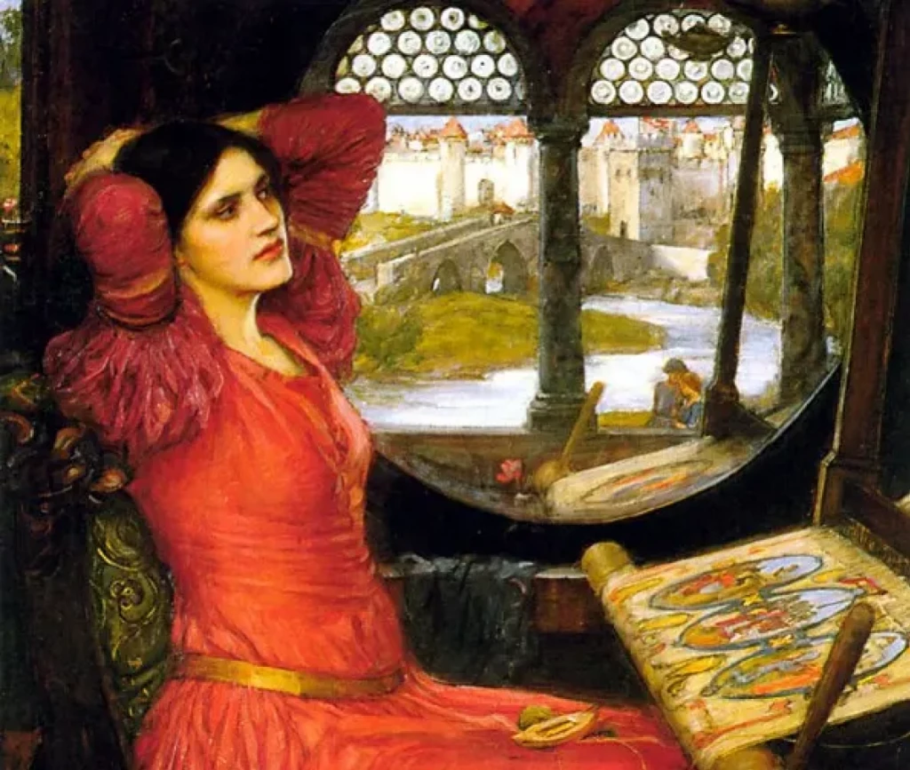 Образы медиумов, предсказательниц, ведуний способных заглядывать в будущее, были весьма популярны в творчестве прерафаэлитов и их последователей. Один из популярных образов — Леди Шалотт, героиня поэмы Теннисона «Волшебница Шалотт». Это история девушки по имени Элейн, на которой лежит проклятье: она обязана оставаться в башне на острове Шалотт и вечно ткать полотно. Девушка создает гобелен, изображая на нём то, что ей удалось увидеть в волшебном зеркале. Однажды она увидела сэра Ланселота и покинула комнату, чтобы поглядеть на него.
