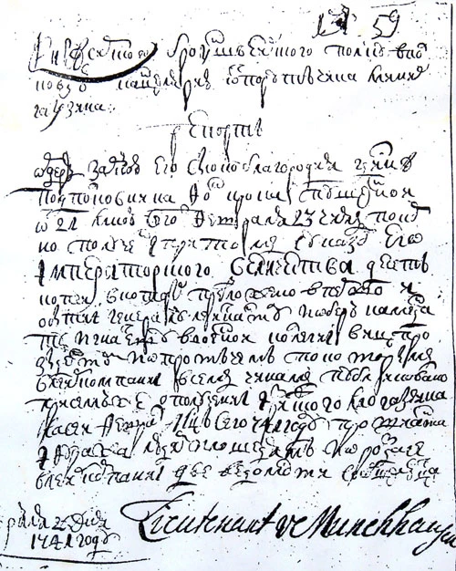 К тому моменту барон Мюнхгаузен прочно обосновался в Риге. В 1744 году он женился на прибалтийской немке Якобине фон Дунтен, дочери рижского судьи, и обзавёлся уютным домом. Рига уже входила в состав Российской империи, а жена барона стала российской подданной. Это обстоятельство ещё сильнее связало Мюнхгаузена с Россией.